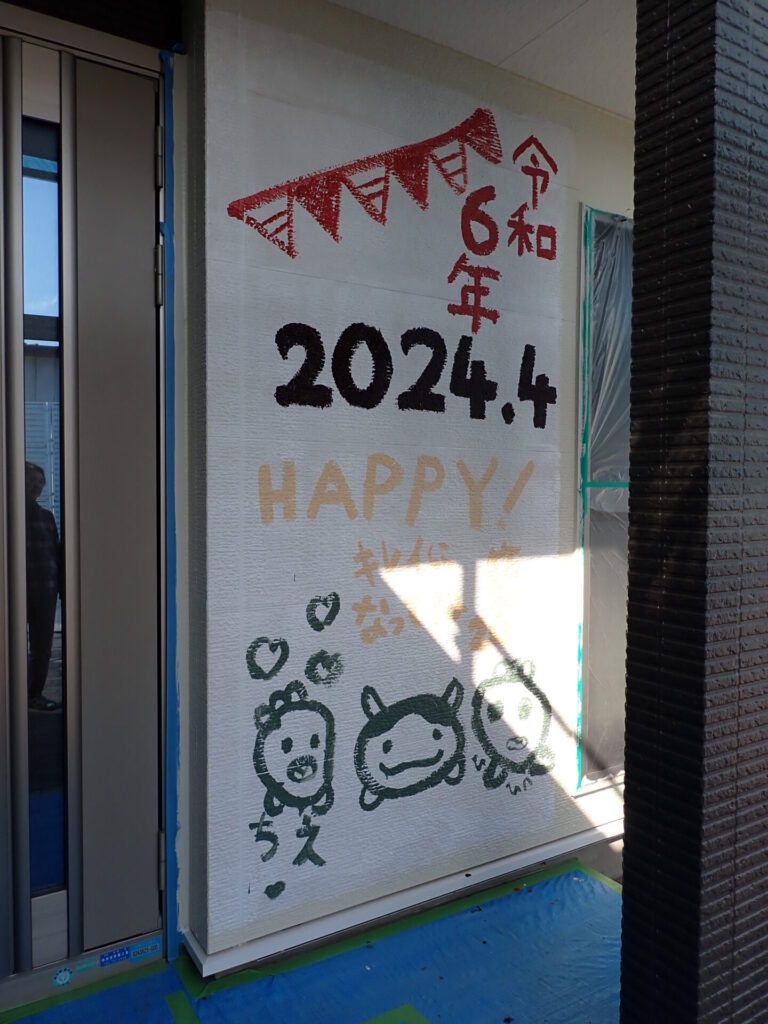 HOME ブログ 外壁塗装前の特別な思い出づくり!「感謝の壁」で家にメッセージを刻もう スタッフブログ 外壁塗装前の特別な思い出づくり!「感謝の壁」で家にメッセージを刻もう 2025.03.12 スタッフブログ みなさん こんにちは!八戸市の外壁塗装屋根塗装 外装リフォーム専門店の株式会社ノザワ プロタイムズ八戸店です! 外壁塗装をする前に、ご家族みんなでお家にメッセージを書き残せる「感謝の壁」。プロタイムズ八戸店では、塗装の合間に「感謝の壁」という、ちょっとした思い出づくりの時間をご用意しています(希望者のみ)「感謝の壁」とは、外壁を塗り替える前に、お施主様やご家族が自由にメッセージやイラストを書き込めるイベントです。お家への感謝の気持ちや、大切な思い出、お子さまの落書きアートなど、自由に表現することで、塗り替えの前に心に残るワンシーンを作ることができます。 「感謝の壁」をおすすめする理由 1. 家族の思い出に普段なかなか外壁に落書きする機会はありませんよね。この機会に、ご家族と一緒にお家への感謝の言葉を書いたり、家族全員で願い事を込めたりすれば、住まいとともに一生の思い出に。2. 施工前のワクワク感を演出外壁塗装というと、「工事が始まる」という印象が強いですが、感謝の壁を取り入れることで、ポジティブで楽しいイベントに変わります。塗装が完成した後も、「あの時こんなことを書いたね」と思い出話に花が咲くことでしょう。 参加方法は簡単! 外壁塗装のご契約後、施工前に「感謝の壁」をご案内お好きなメッセージやイラストを自由に記入その後、職人が丁寧に塗装を仕上げて、美しく生まれ変わった外壁に!塗り替え前の特別な時間を、「感謝の壁」で彩りませんか?お家への愛着がより一層深まり、家族の絆を感じられる素敵な瞬間になるはずです。上塗り前に、写真撮影もサービスしております。住まいの歴史を、家族写真としてもぜひご活用ください。プロタイムズでは、塗装工事をただのメンテナンスではなく、ご家族の大切な思い出の一つとして残せるよう心がけています。ぜひ「感謝の壁」にご参加ください! 春の塗装キャンペーン 特設サイトを見る! もっと知りたい!塗り替えセミナー毎月開催しています 見積依頼や塗り替えを決める前に、もっと詳しく知りたい方向けに毎月塗り替えセミナーを実施中です!もちろん他社様主催のセミナーとはしごしていただいてもOK!しっかり知識を身に着けて、その上でプロタイムズ八戸店へご依頼いただけましたら大変光栄です。ぜひご来場ください! 塗り替えセミナー詳細&お申込みはこちら プロタイムズ八戸店では、無料の外壁診断をしております。塗り替え前に住まいの健康診断を実施、点検確認しています。また、塗り替えをご依頼いただきましたお客様には定期点検のご案内も行っております。こちらもサービス内にはいっておりますので、アフターフォローも万全です。屋根外壁の塗り替えの際にはぜひプロタイムズ八戸店をご検討ください! 無料の屋根外壁診断を依頼する! スタッフブログをご覧いただき ありがとうございます。青森県八戸市の塗装会社株式会社ノザワ(プロタイムズ八戸店)です。八戸市・八戸市近郊の屋根塗装・外壁塗装ならお任せください!塗装以外の外装リフォーム・内装リフォーム・雨漏りや室内リフォームなどのお家のお悩み事もノザワにお任せ下さい! 関連動画 テレビCM プロタイムズ紹介動画 プロタイムズ八戸店は外装劣化診断士のいるお店です♪ 調査、お見積は無料です。調査・お見積をしたからといって、プロタイムズに塗装工事を依頼しなければならないということはありません。八戸市の屋根塗装・外壁塗装・外装リフォームのご相談等お気軽にお問い合わせください! 最新記事 屋根塗装のサビ止めはなぜ必要?放置すると起こる劣化と正しい対策 2025.12.24 外壁塗装は築10年が目安?艶選びも重要です 2025.12.17 地震後、お家の屋根と外壁の心配事はプロへ相談 2025.12.9 カテゴリ スタッフブログ 新着情報 前の記事へ 一覧へ戻る 次の記事へ 関連記事 2025.11.13 スタッフブログ 外壁塗装を長持ちさせる方法|費用を抑え、家の寿命を延ばす 2025.10.1 スタッフブログ 修繕費を分割払い!リフォームローンのご案内 2025.12.9 スタッフブログ 地震後、お家の屋根と外壁の心配事はプロへ相談 ピックアップPICKUP 塗装品質へのこだわり 有資格者による建物診断 わかりやすく納得の見積もり 屋根&外壁塗り替え勉強会