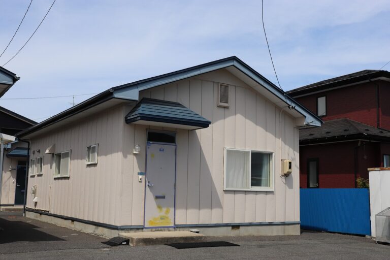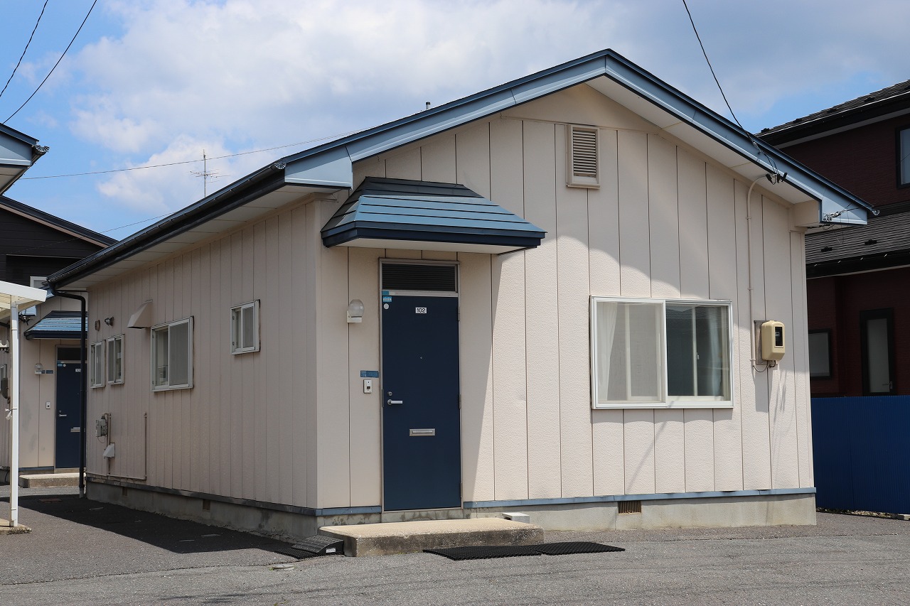 4棟同時に屋根の塗り替えを実施しました。一緒に玄関ドアも同系色の差し色で化粧直し。引き締まった印象になりました。