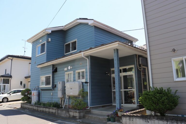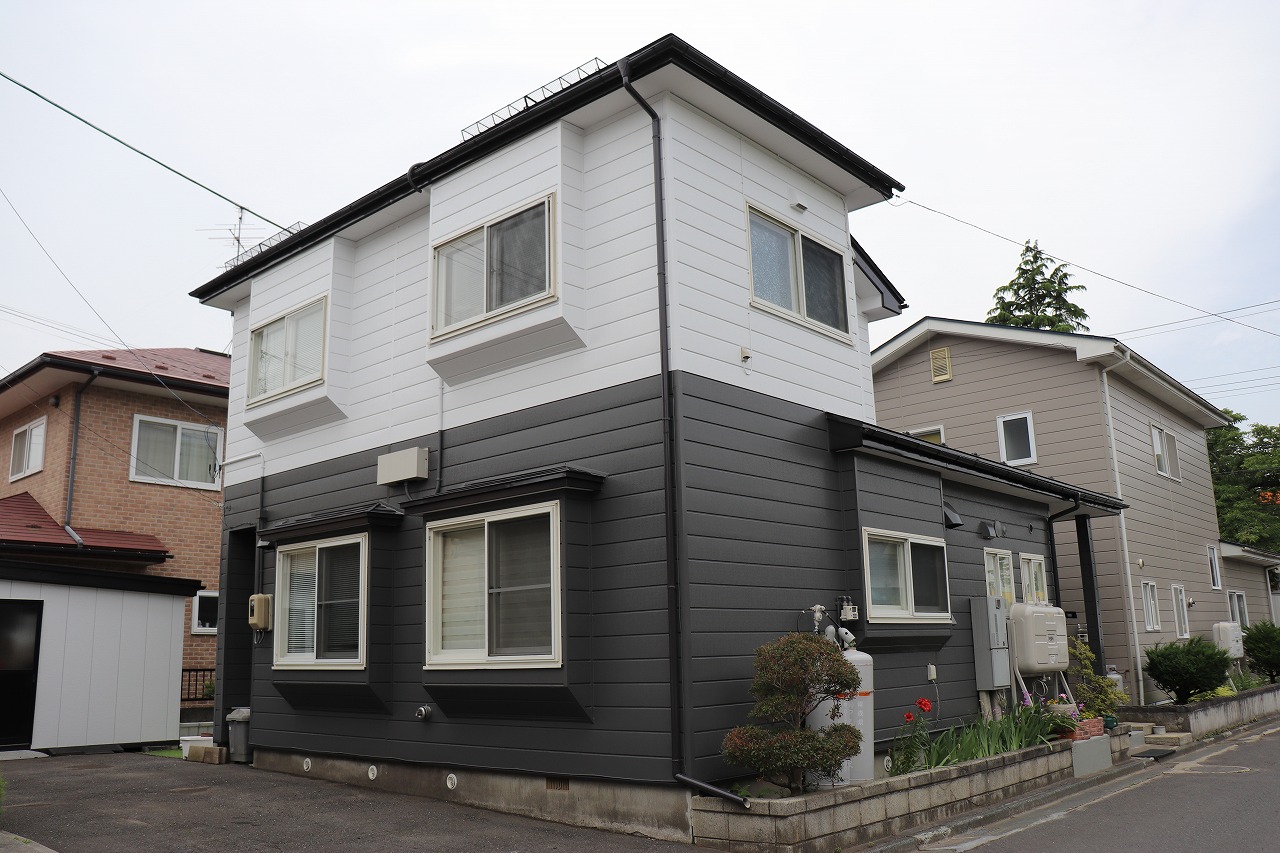 施工内容 足場・養生シート・高圧洗浄・軒天塗装・樋塗装(金属)・破風板、鼻隠し塗装・水切り塗装・雨樋交換・スノーキング脱着・シーリング(打替)・土間塗装