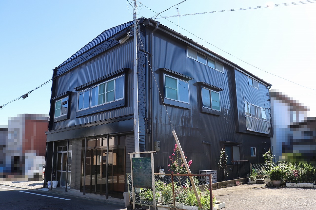 店舗兼住居です。色の選択は店を引き継いだ息子さんが決めました。全体的にシックな色になり、店舗としてかなり目立った仕上がりになりました。