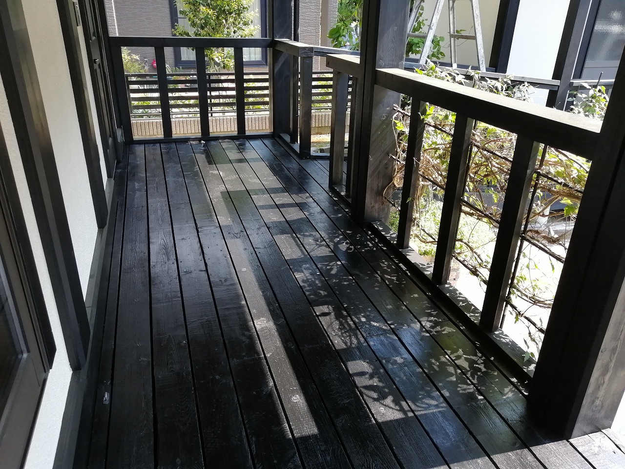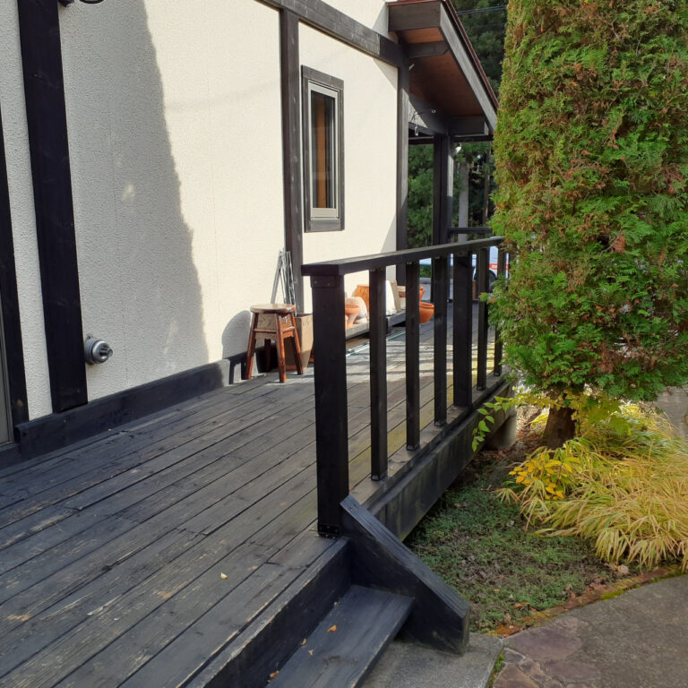 2回目の塗装です。住居回りも含め木部塗装の多いお客様でした。木部塗装や木部周りのコーキングの工事内容に納得されたようです。