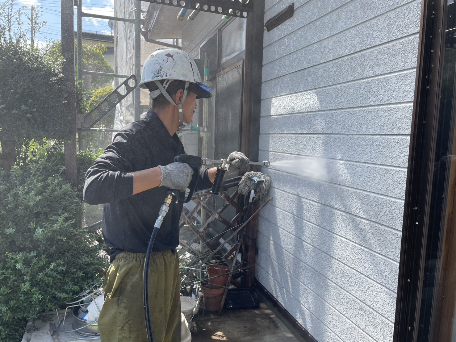 • 外壁洗浄中