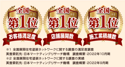 全国累計施工棟数10万件の実績!3部門で1位を獲得!